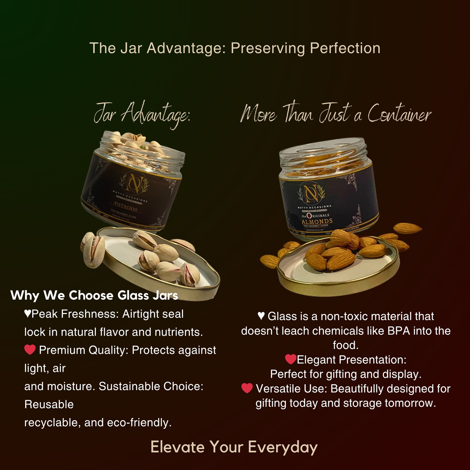 Non-Toxic Purity: Glass ensures the nuts remain pure and untainted—a safe choice for your family's health.
