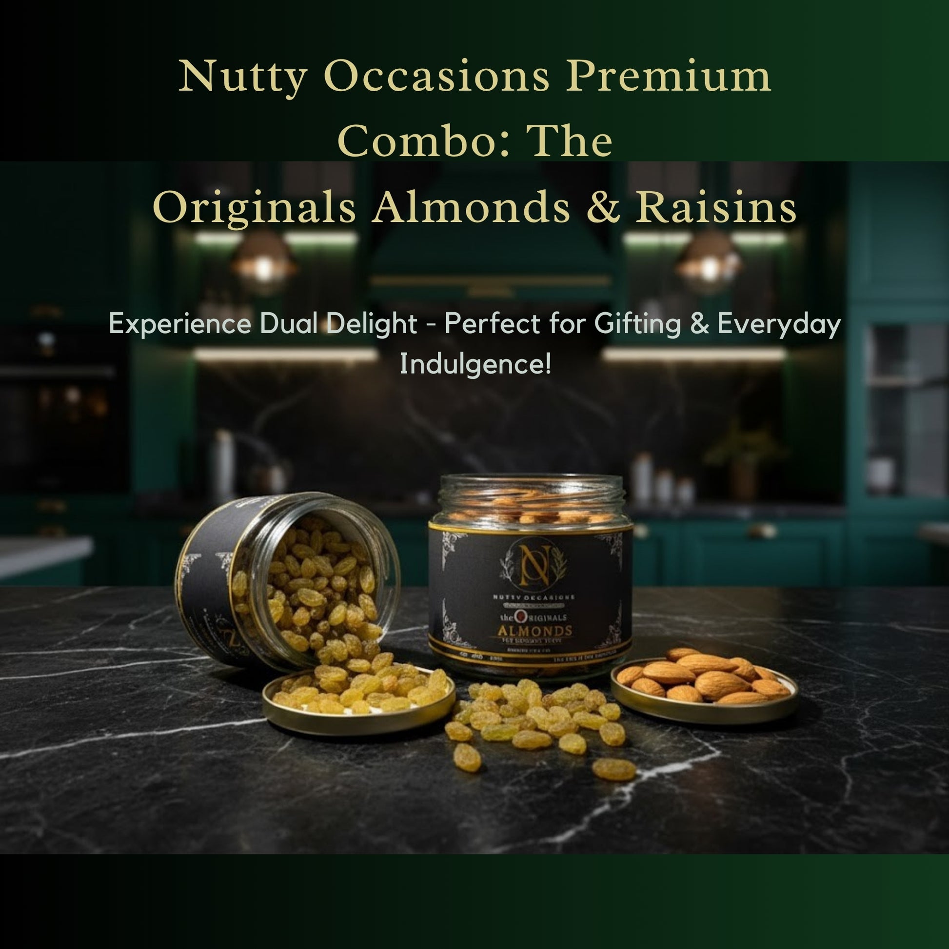 Here is a product description crafted to attract discerning customers and build that luxury brand image for the Nutty Occasions Premium Combo: The Originals Almonds & Raisins.